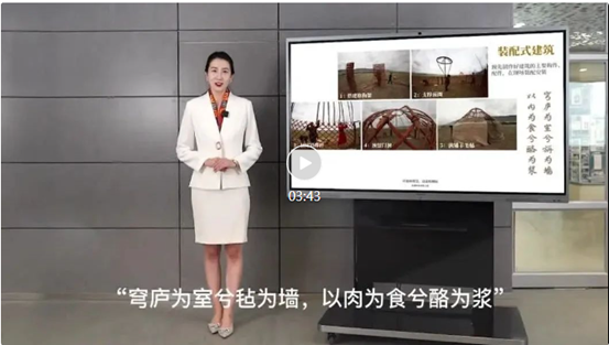 “搭建方便,拆卸簡單的小小氈房,是裝配式建筑的典范,更是游牧民族轉場遷徙中的溫暖港灣”,”風貌獨特的高臺民居,成為營造智慧最自然的表達”,”人與建筑的生機勃勃,在這一呼一吸間,跨越千年”,”殘垣斷壁里散落的石塊,是人們給歲月以文明的珍貴記憶”?。
