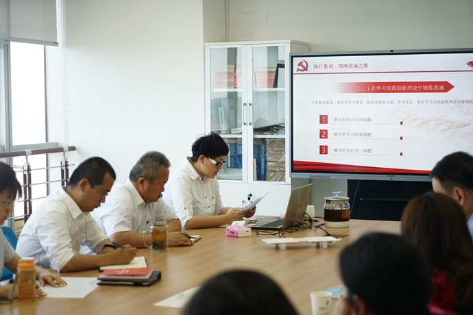 ? 下午四點半,活動在時代廣場D座28樓市政分院會議室舉行,由黨支部宣傳委員丁慧主持會議。活動第一項:由市政分院支部書記張院長帶領大家重溫入黨誓詞,重現(xiàn)入黨宣誓時的莊嚴承諾和奮斗決心;活動第二項:丁慧組織大家集中學習《中國共產(chǎn)黨國有企業(yè)基層組織工作條例(試行)》,我們要始終保持思想上的先進性,在工作中作出表率、爭創(chuàng)一流、發(fā)揮先鋒模范作用;活動第三項:支部書記張院長給大家講微黨課《重溫入黨誓詞,永遠忠誠于黨》,帶我們從歷史和現(xiàn)實方面,談忠誠于黨的問題,作為一名黨員,我們需要在堅定理想信念中鑄牢忠誠,在學習實踐創(chuàng)新理論中錘煉忠誠,在精通業(yè)務履職盡責中檢驗忠誠;活動第四項:組織大家相互交流學習心得,丁勇順主任說:”張院長的微黨課講得非常深刻,深受啟發(fā),今后我們該多組織這樣的活動,活動的形式可以多種多樣,目的是增加機關和企業(yè)的聯(lián)動機制,共建互學互幫互促的品牌黨支部。”