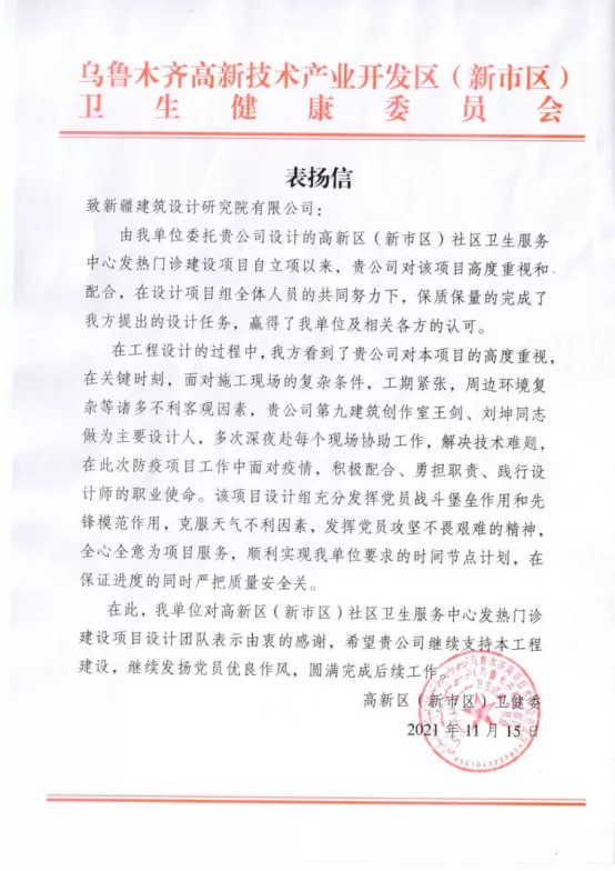 項目設計組充分發(fā)揮黨支部戰(zhàn)斗堡壘作用和黨員先鋒模范作用,克服天氣等不利因素,全心全意為項目服務,切合實際的站在建設單位角度出發(fā),順利實現(xiàn)衛(wèi)健委要求的時間節(jié)點計劃,在保證進度的同時嚴把質量安全關,贏得了相關各方的認可。